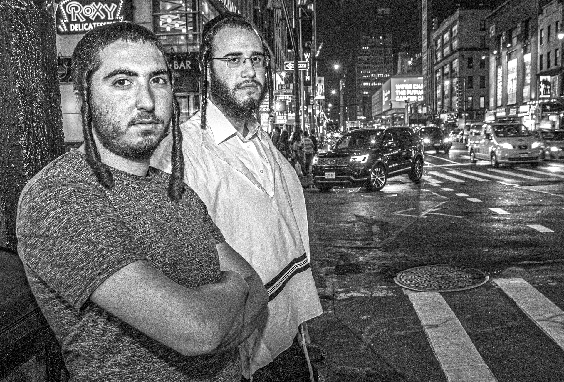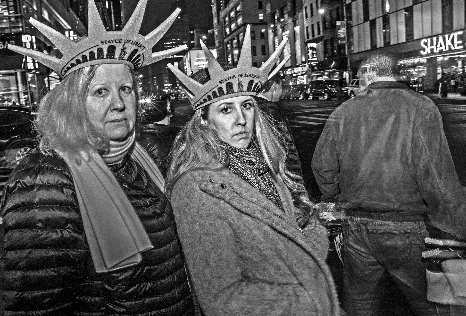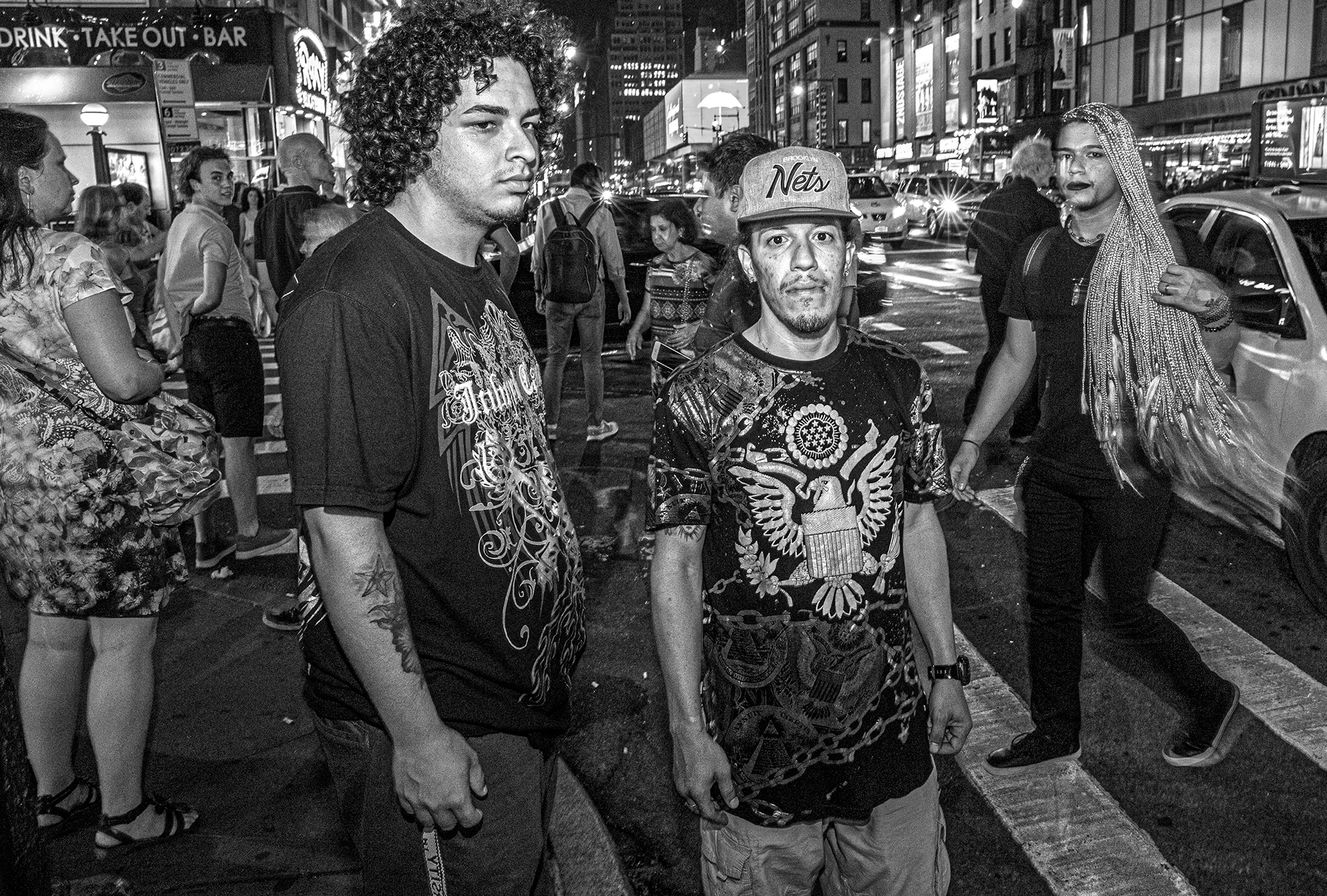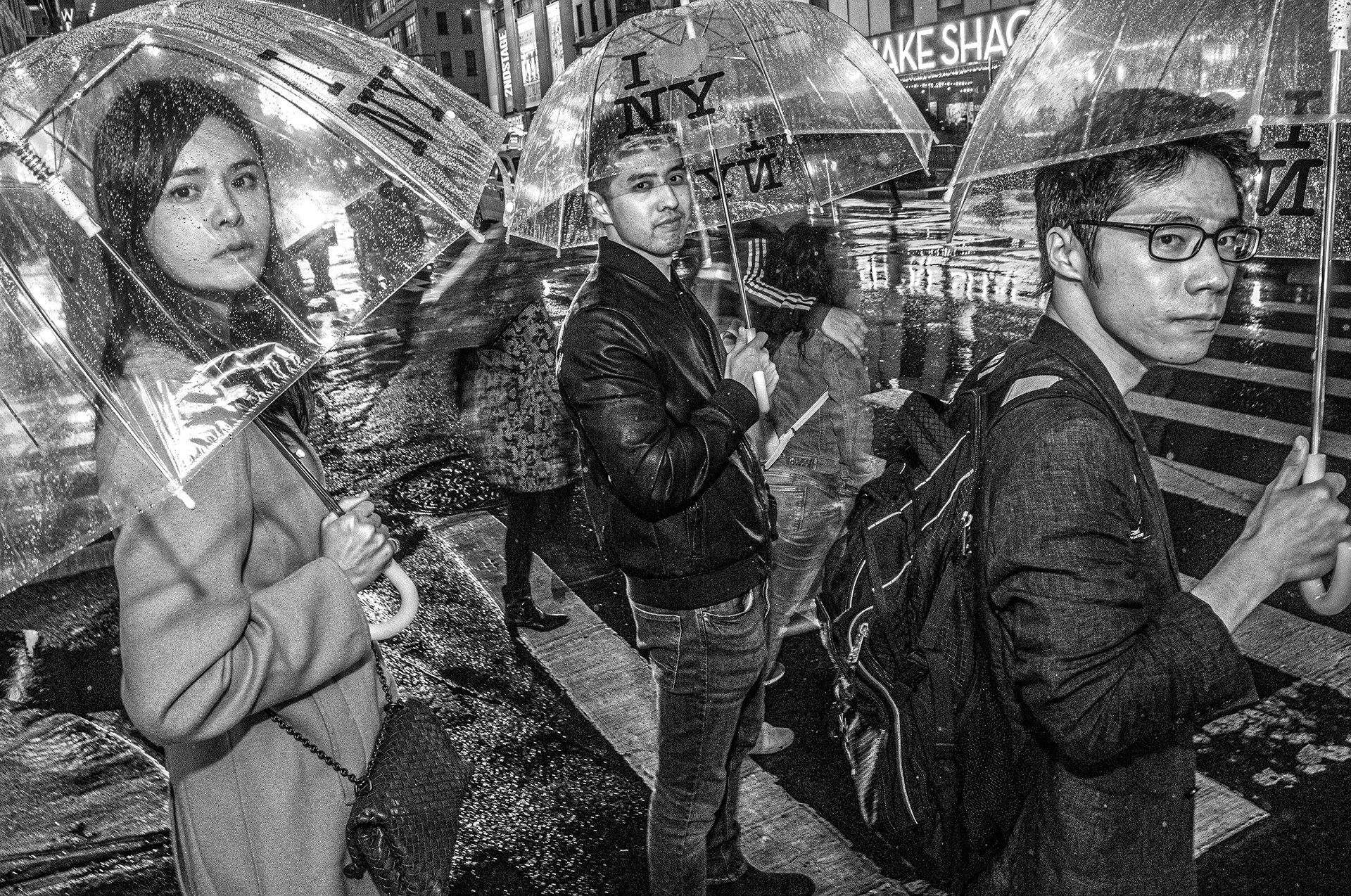 The streets of Manhattan are filled with people from all over the world. This gives me the opportunity to capture different cultures and faces on one street corner. I chose to shoot at night with a slow shutter speed to make the photographs more interesting. To prevent camera shake and to be removed from my subjects, I used a tripod and remote camera release. I placed my camera on the corner of 46th and 7th. As people crossed the street, I would click the remote shutter, and the flash would release. Using this technique, I was able to capture the reactions of people as they noticed the camera but no photographer.