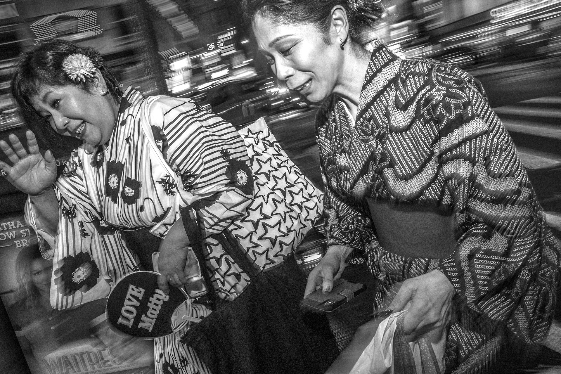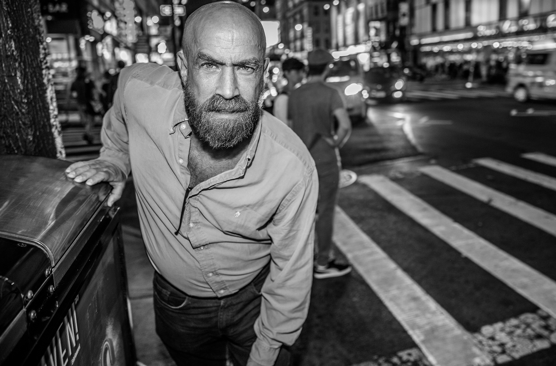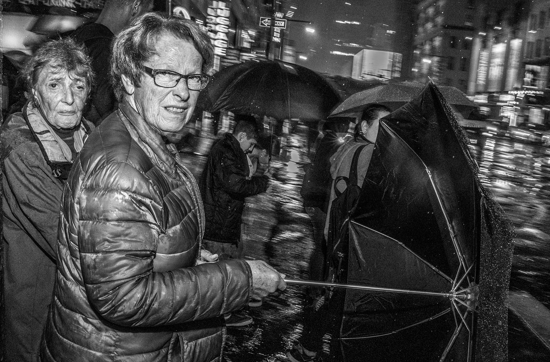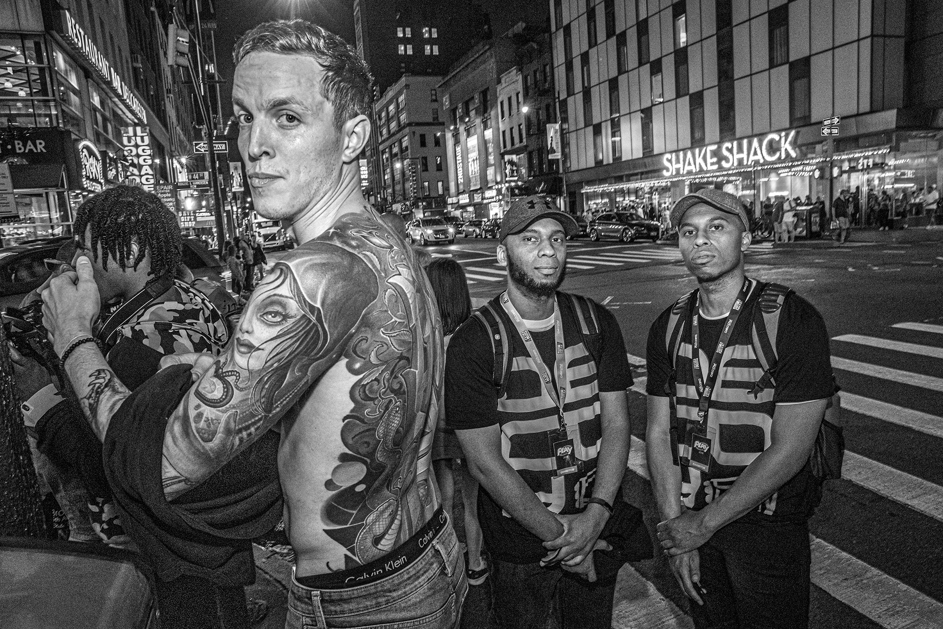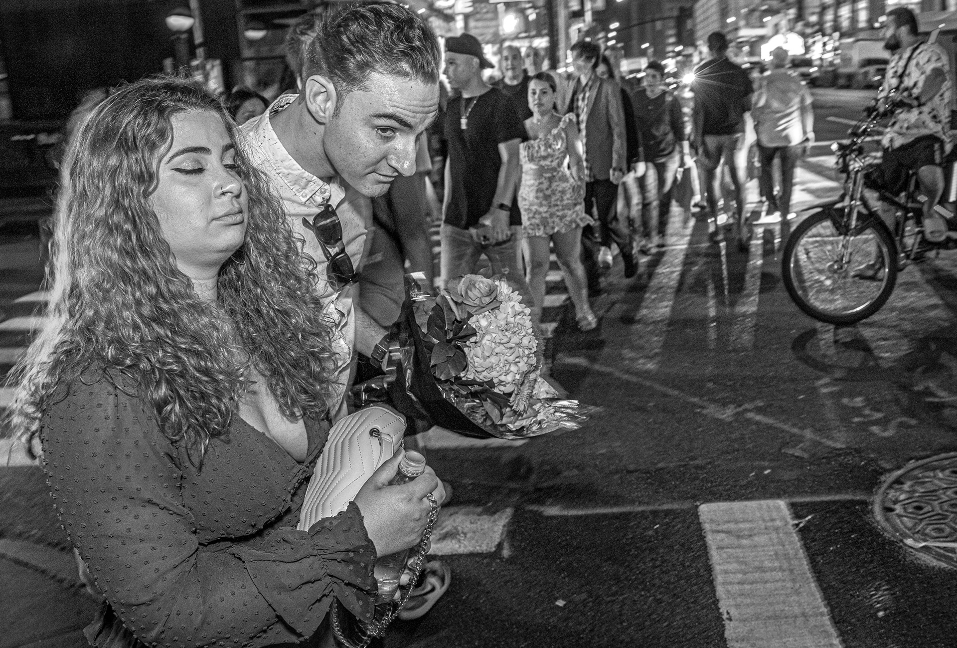 The streets of Manhattan are filled with people from all over the world. This gives me the opportunity to capture different cultures and faces on one street corner. I chose to shoot at night with a slow shutter speed to make the photographs more interesting. To prevent camera shake and to be removed from my subjects, I used a tripod and remote camera release. I placed my camera on the corner of 46th and 7th. As people crossed the street, I would click the remote shutter, and the flash would release. Using this technique, I was able to capture the reactions of people as they noticed the camera but no photographer.