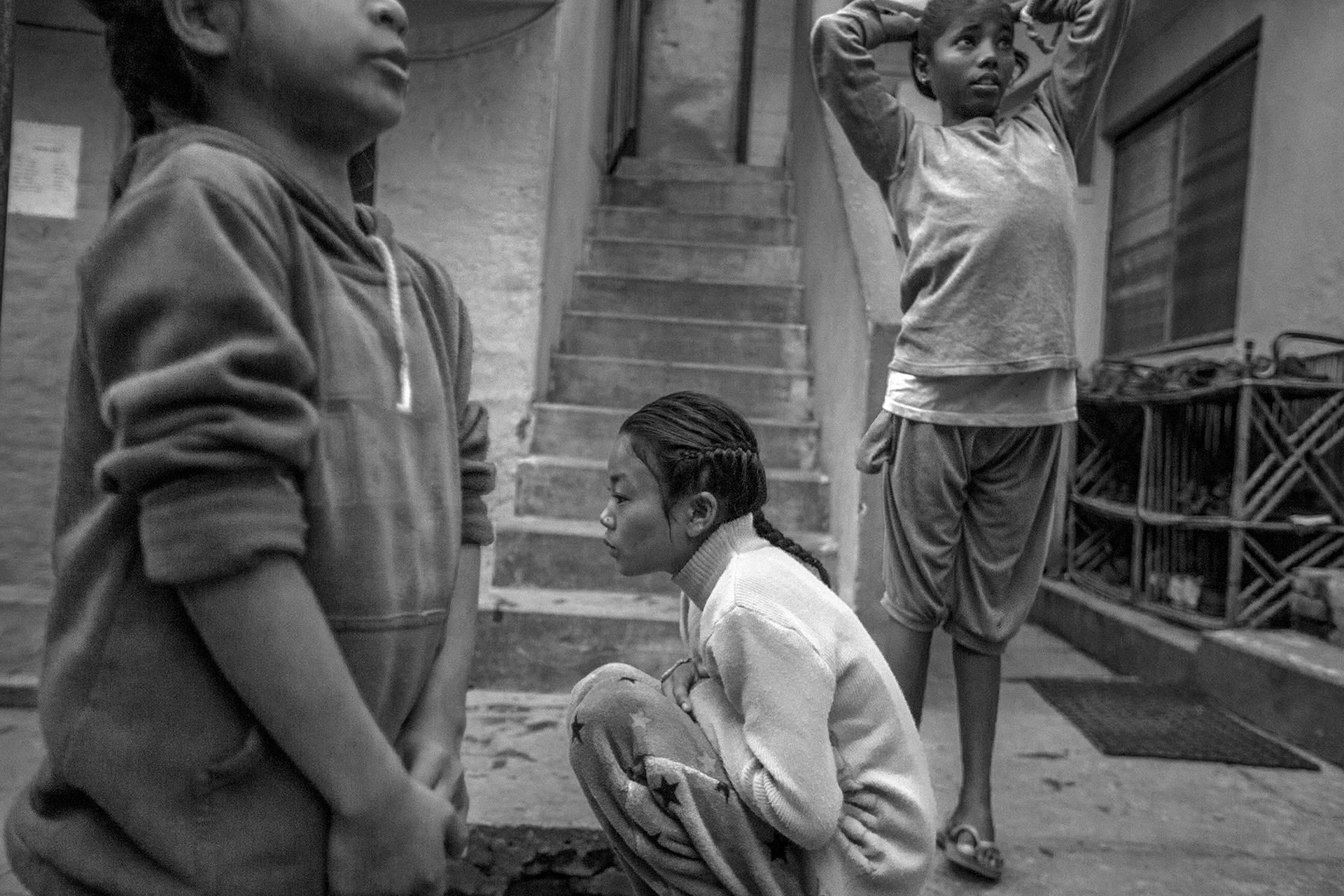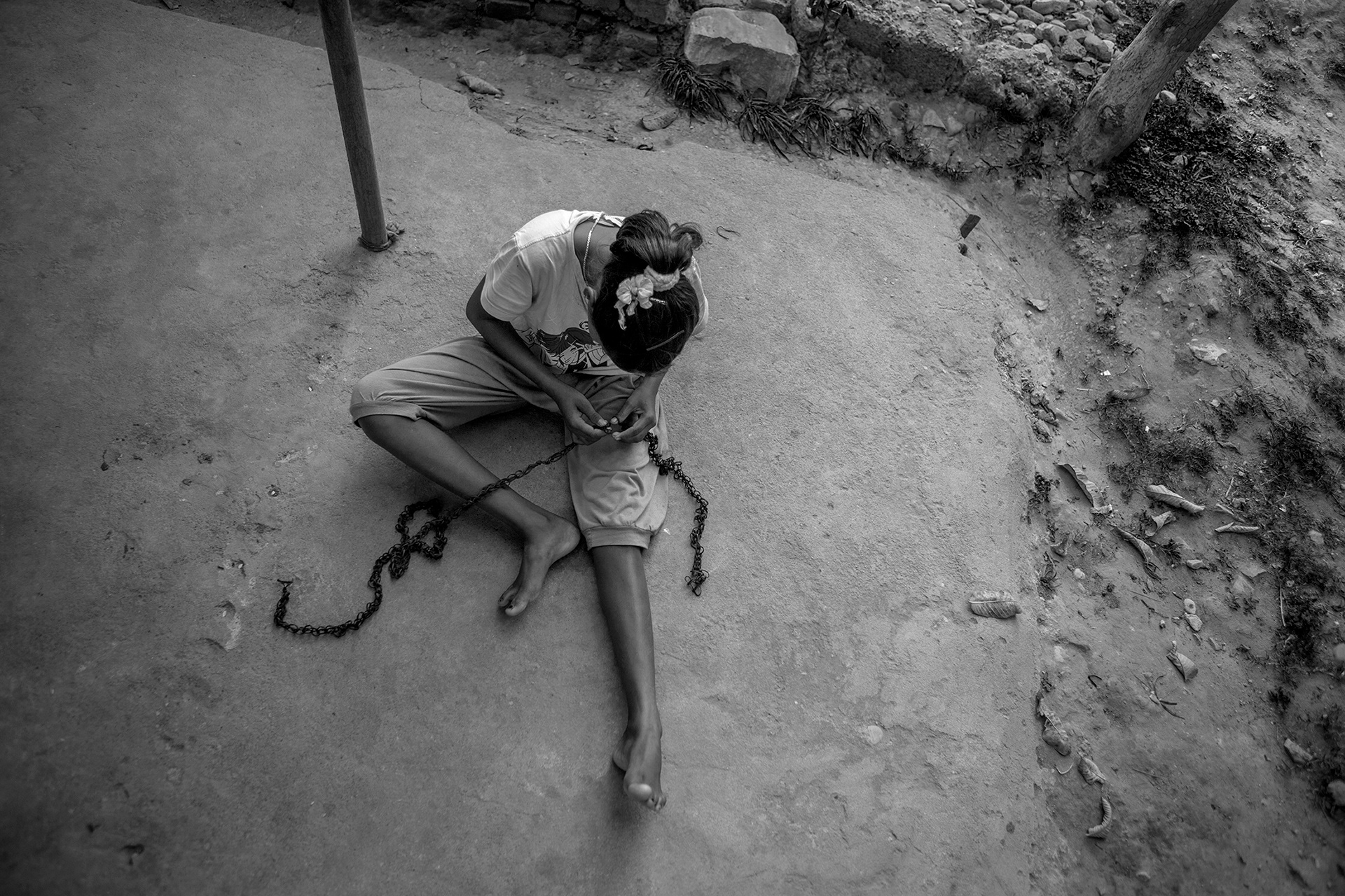 Ashika Shretha,七歲,來自Makwanpur。被父親性侵。Ashika自父母分居後隨父親生活,她的母親身患殘疾,父親被送進監獄後Ashika成了無人看護的小孩。2016年2月26日,Ashike被送到庇護所,這是她在庇護所裡度過的第一天。Ashika對庇護所的陌生環境感到緊張不適,一個年齡稍大的同為被家庭成員性侵的受害者正在安慰她。